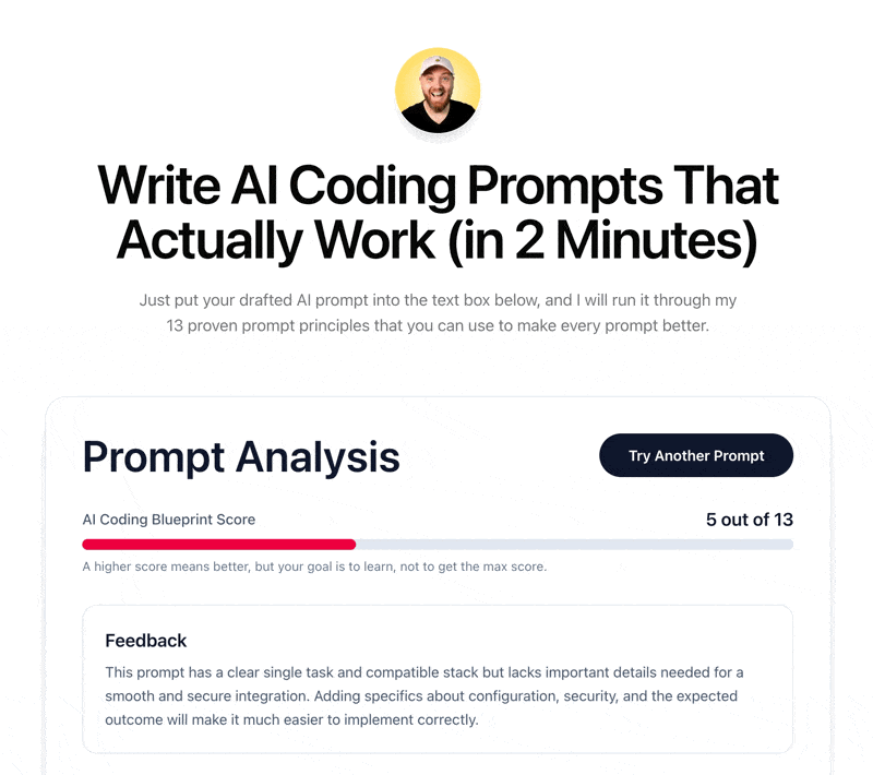 Hey Reader,In the last six months, I've grown from 0 to 30,000 subscribers on YouTube. But it took me years to figure out what to do with my life. ... and then one day I thought, "Hey, let's make a video about AI coding" The rest is history. So, today I turn 40, which is equally unbelievable. 😂 To celebrate... AI Coding Blueprint is 20% OFF (use code: CAKEDAY) I'm giving away 2x 30-min one-on-one calls to lucky buyers This offer dies tonight at midnight (Eastern Time) Karl said: Rob's course...